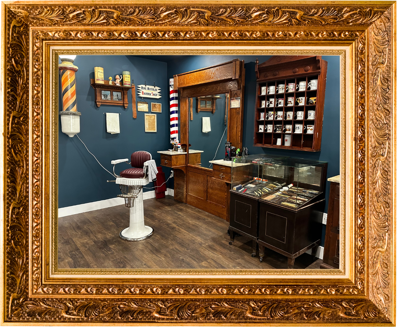 Owners Patrick and Will have been friends for years. Patrick started as one of Will’s clients, and their love of antiques + collecting brought them together as close friends. It was only natural that they would end up partnering to open a barbershop together. Patrick’s background and expertise in commercial construction paired with Will’s years of experience behind the barber chair was what led to the formation of Blue ribbon Barbershop.